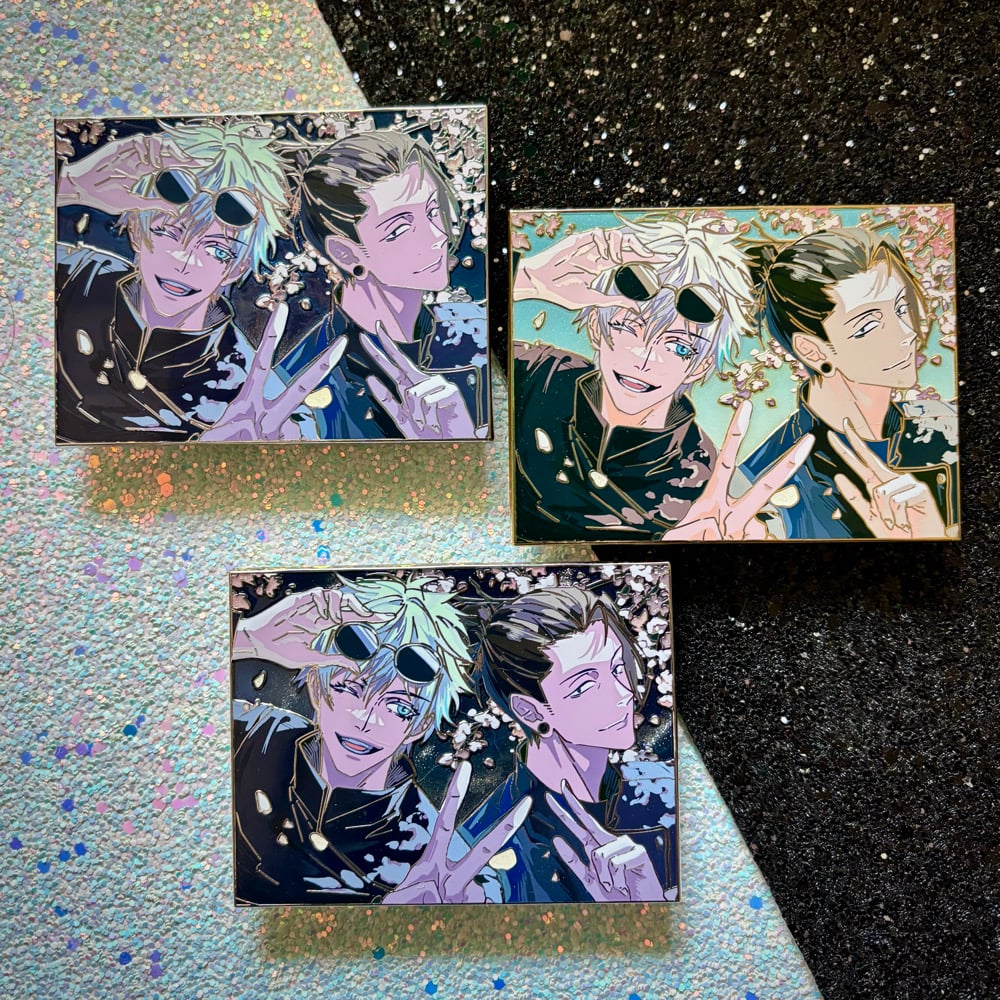 š Gold metal with gradient pearl background and glitter flowers