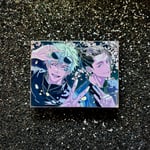 š Silver metal with cat eye background and glitter flowers