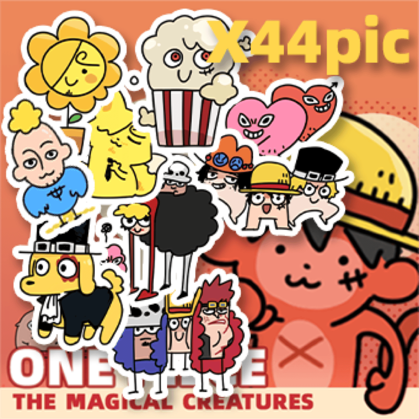 Each sticker pack will contain all 36 designs shown in second picture, with 8 duplicates, a total of 44 pieces.